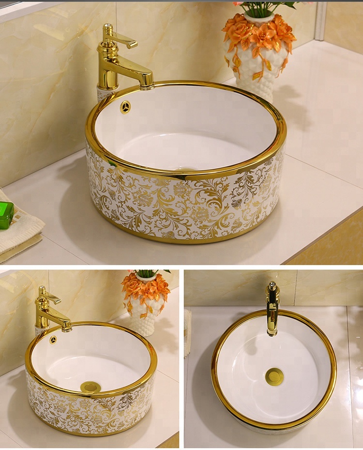 Fitting Gold Porcelain Vanity Basins, Bathroom Gold Vanity Basins
