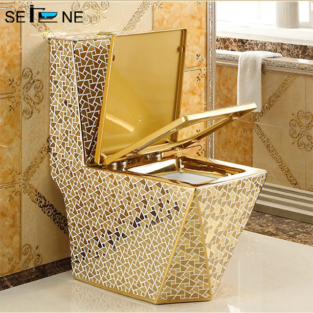 Toilette Moderne Luxury Electroplating Toilet Wc Toilet One-Piece Bathroom Ceramic Gold Toilet