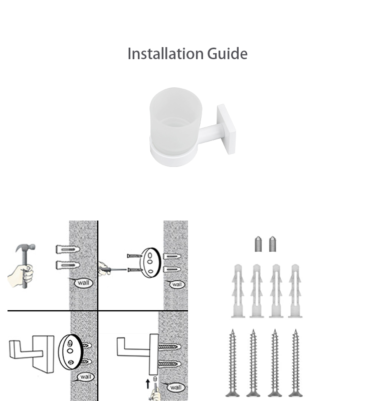 Sales unit: Item model: HD-224-1408 color: white style: contemporary product name: toothbrush cup holder application: Bathroom partition hardware, hotel Gross weight per piece: 1.000 kg usage: Hotel home bathroom Single package size: 35X10X10 cm Cup material: plastic design style: modern brand:......