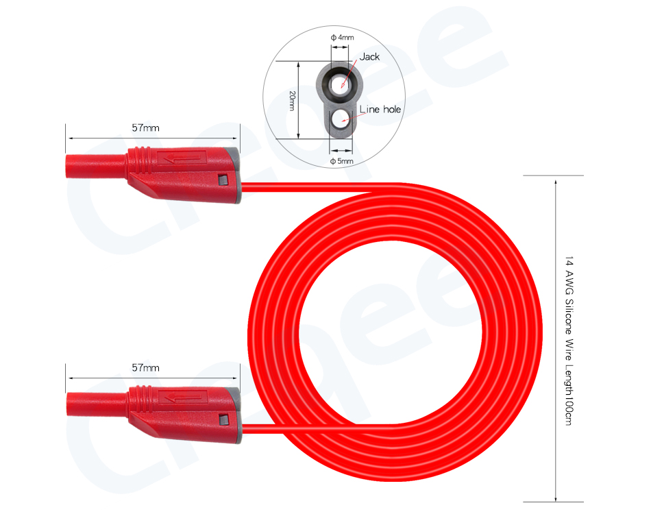 P1050-1 4mm Banana Plug Test Lead Soft Silicone Cable Safety Stackable Male Plug 1M Cord 14AWG 1000V/10A