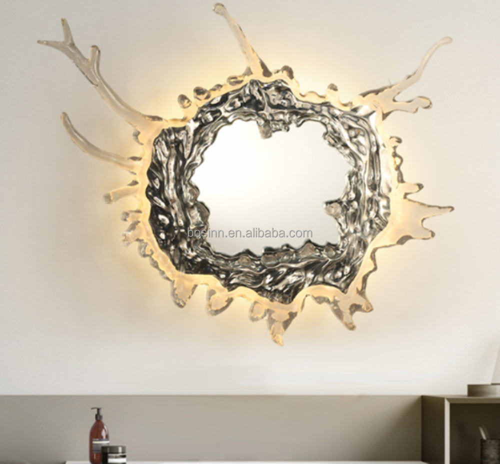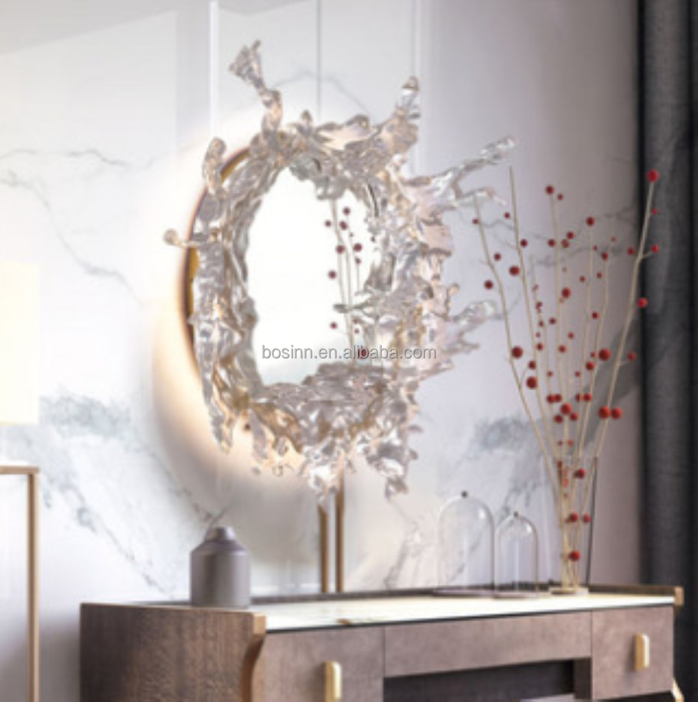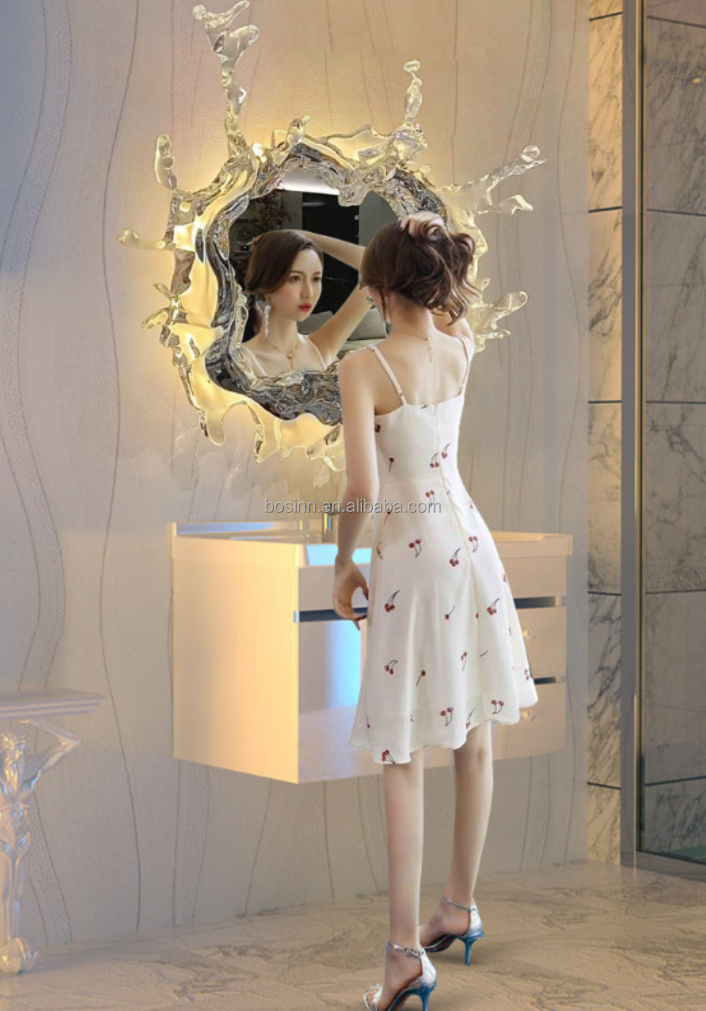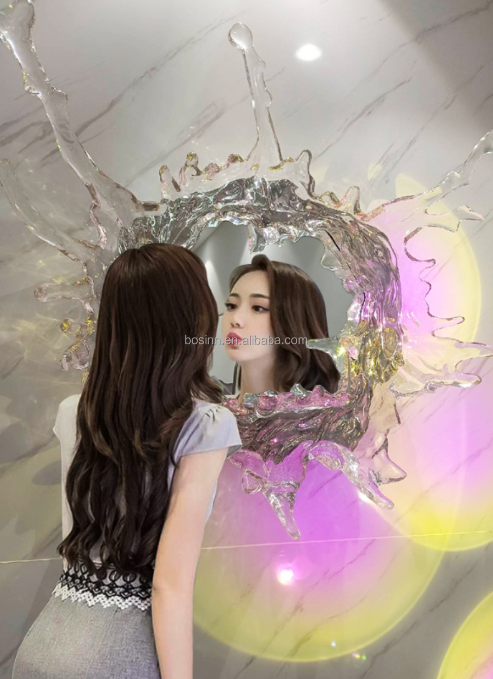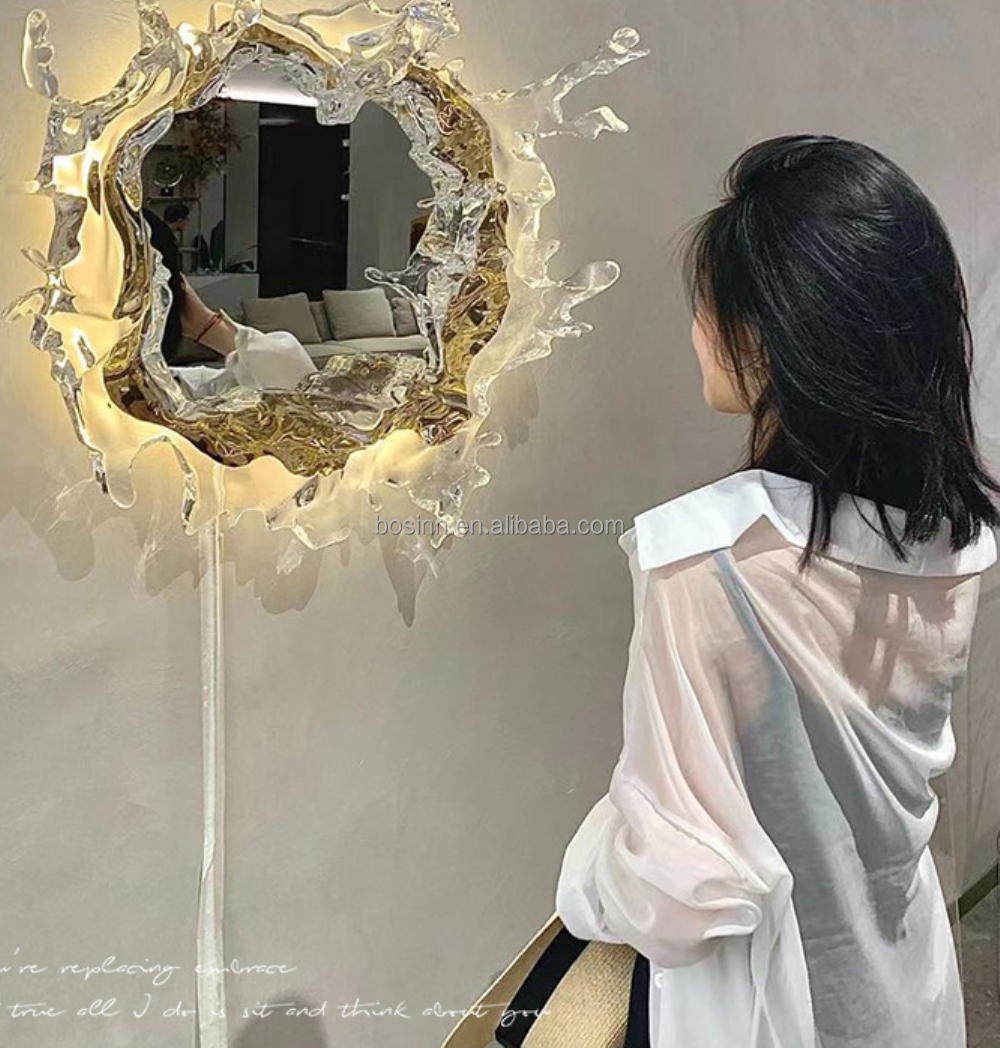 Italian fashion luminous wave mirror girl mirror led living room makeup decorative mirror