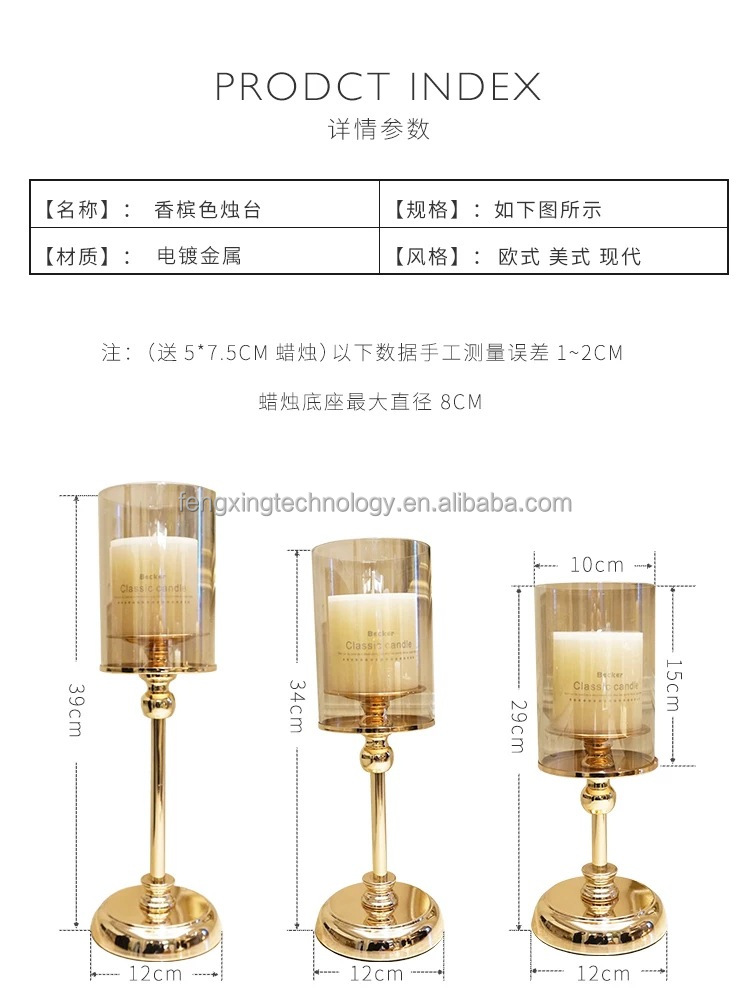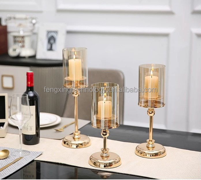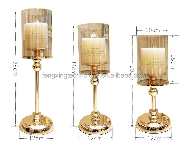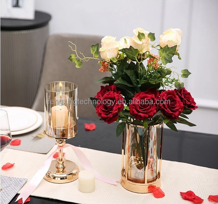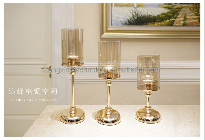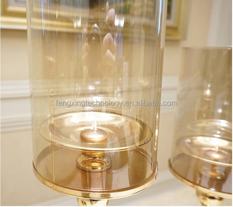 Clear Crystal Glass Candle Holder Modern Gold Metal Lantern Centerpiece Candle Holder