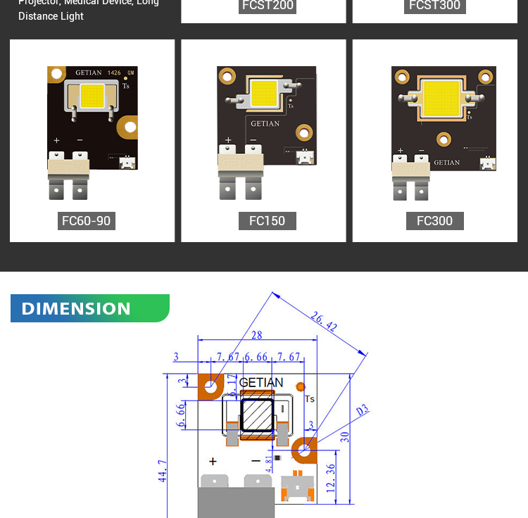 Based on this principle, GETIANLEDS high lumen density COB was developed.