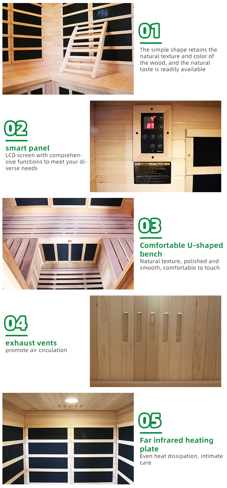 Contemporary style square outdoor sauna Infrarrojo cedar infrared dry sauna for 4 people