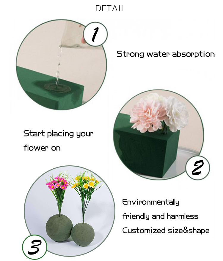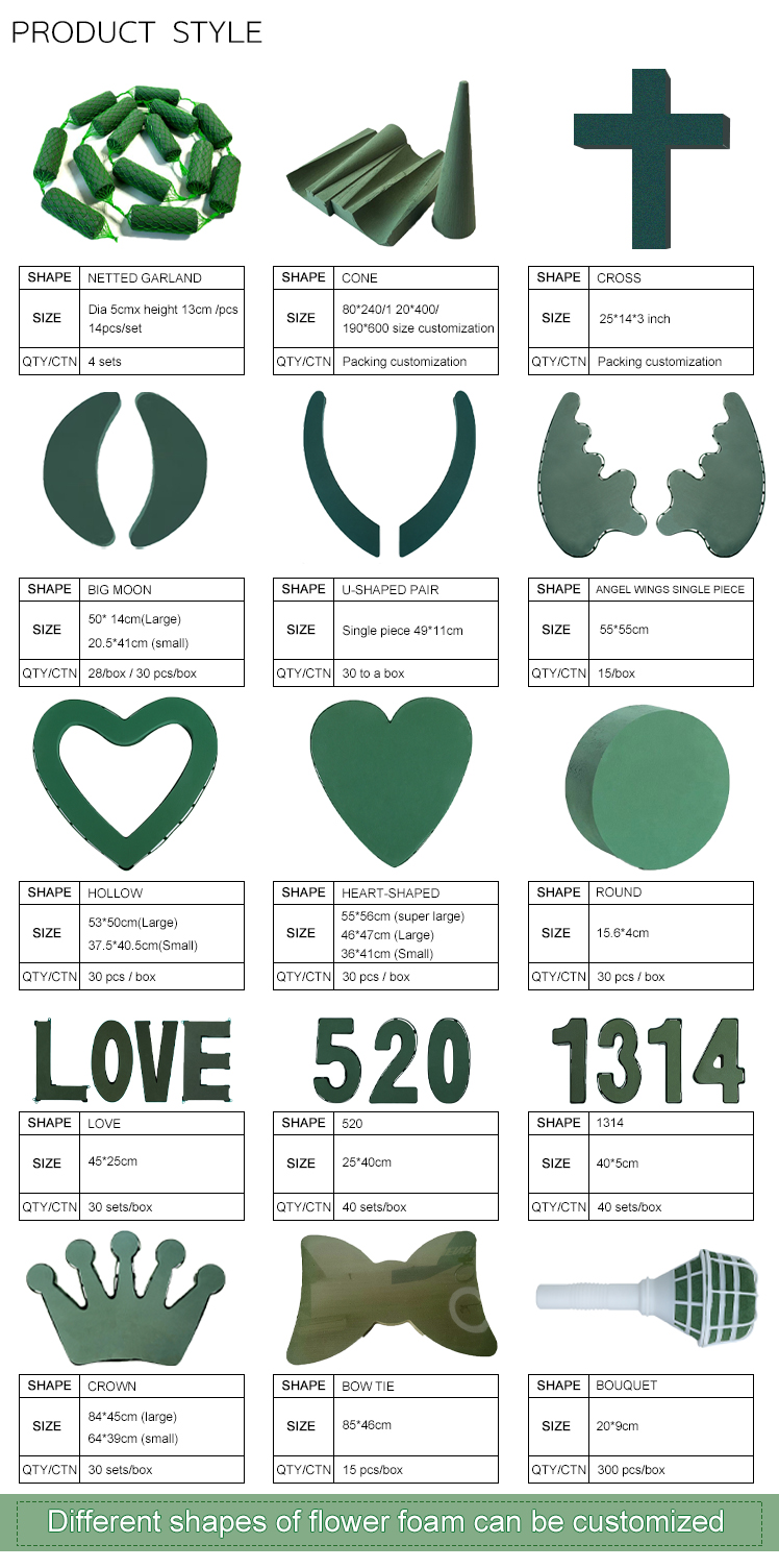 | Packaging Details: | Carton Wholesale Wet Floral Foam Decoration Fresh Flowers Floral Foam Brick Size 22cm 10cm 7cm | Material: | wet floral foam |