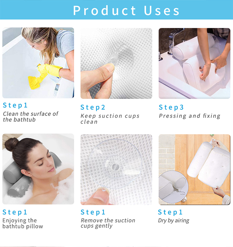 product name: SUREWAL 3D Mesh Luxury Bath Pillow Bath Spa Pillow Packaging Details: Plastic bags, handbags, color boxes, brown boxes, mailboxes, gift boxes, custom packaging usage: bath pillow bathtub spa pillow Package preview: Supply capacity: 30000 pieces per month feature: Sustainable Function:....