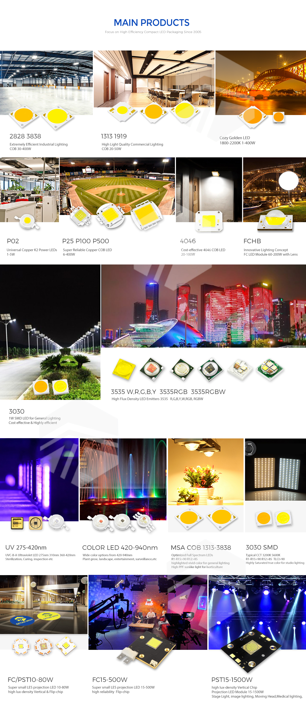 Origin: Guangdong, China Service 2: Support sample service Viewing angle(°): 120 type: COB LED chip, COB LED Power Consumption: 0.4 Color temperature (CCT): 2700-6000K Working temperature(℃): -20 - 80 Warranty (year): 2 years port: Guangzhou/Shenzhen/Shanghai Storage temperature(℃): -40 - 110...... -