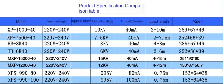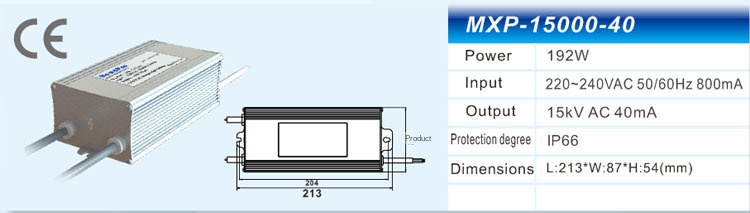 | Input voltage: 220VAC | Output voltage: 15KVAC |
