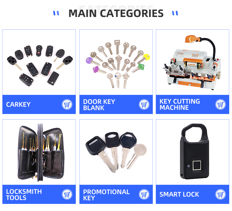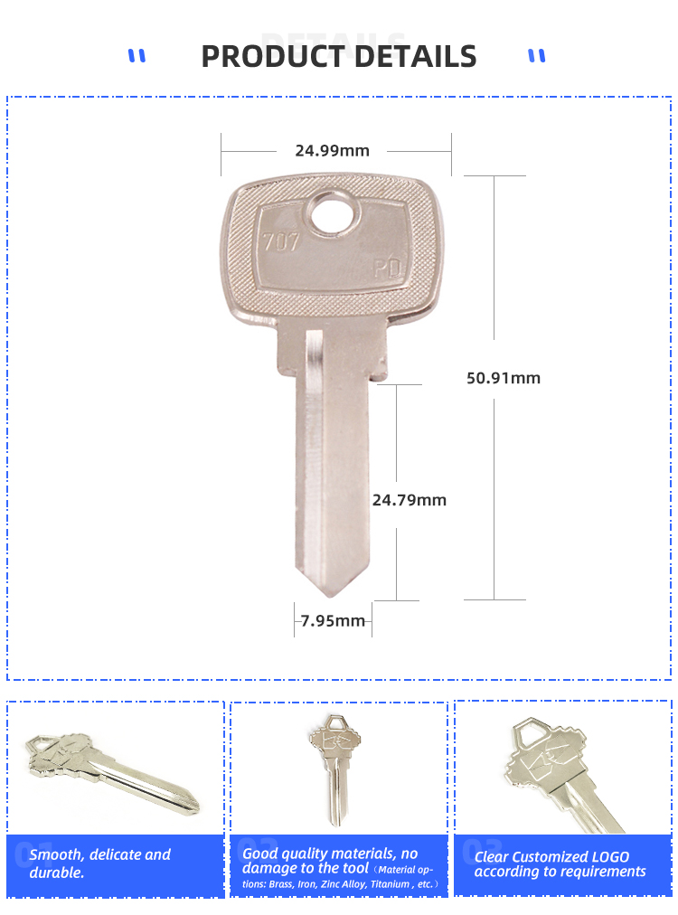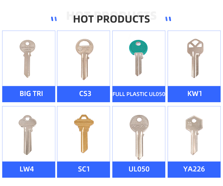 | Material: | Copper, brass, steel, iron, zinc alloy, titanium, etc. | Types of key blanks: | Door Keys, Dimple Keys, Car Keys, Groovy Keys, Cabinet Keys, and more |