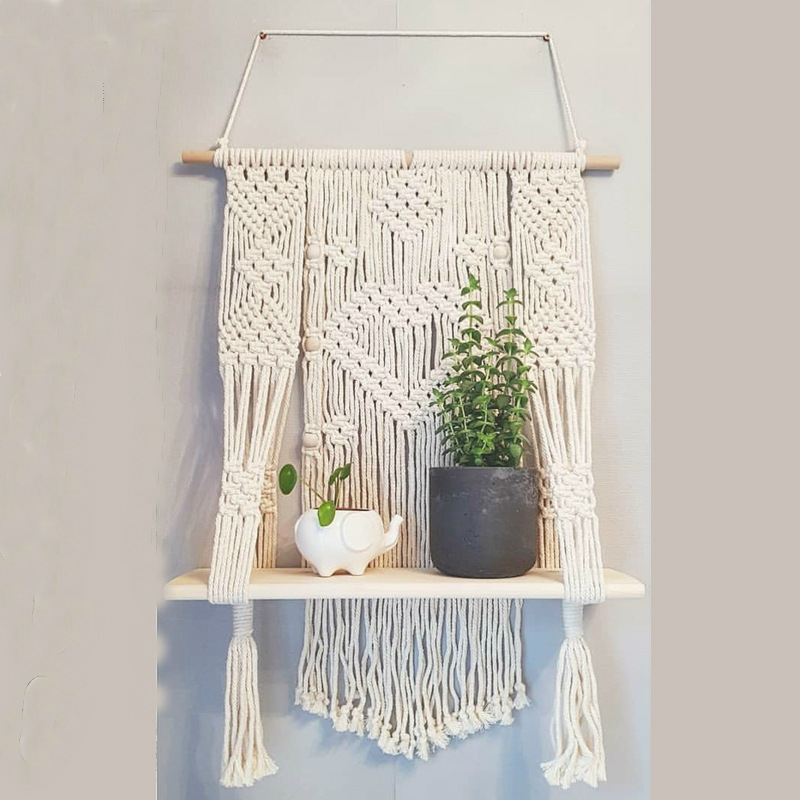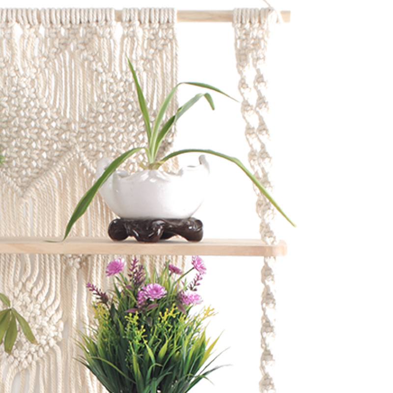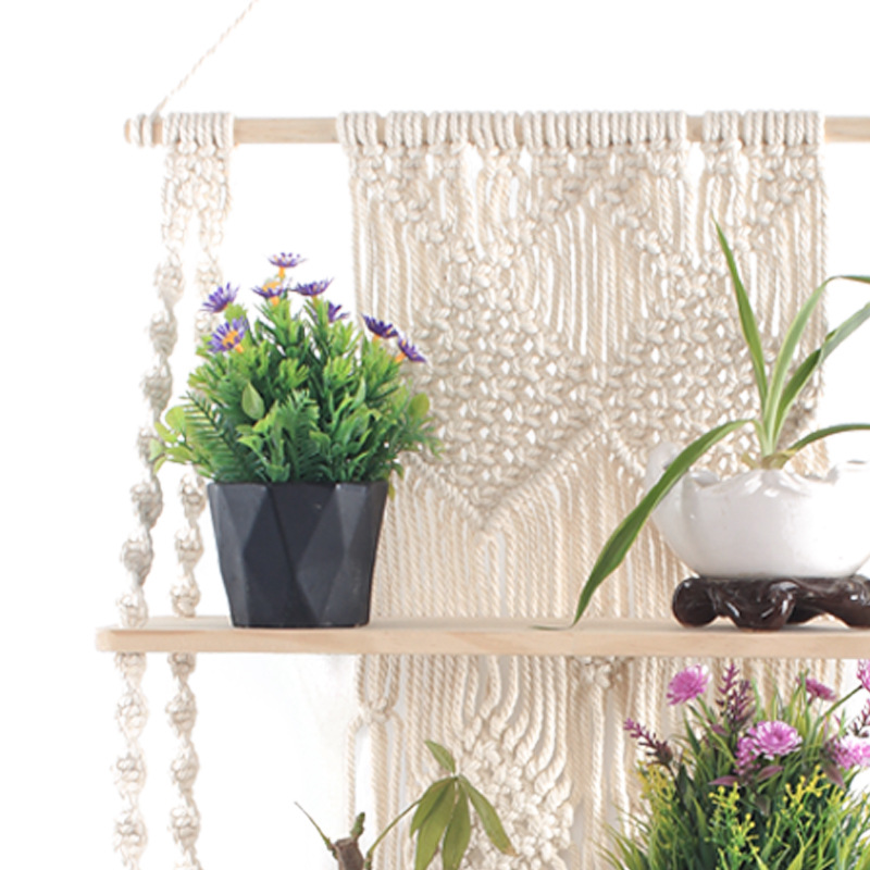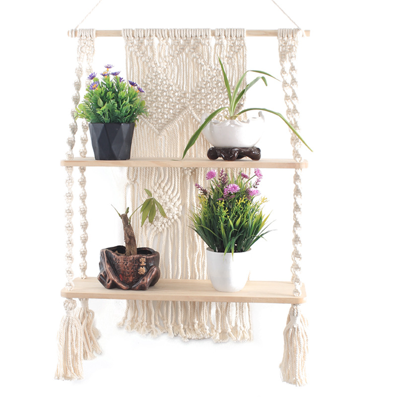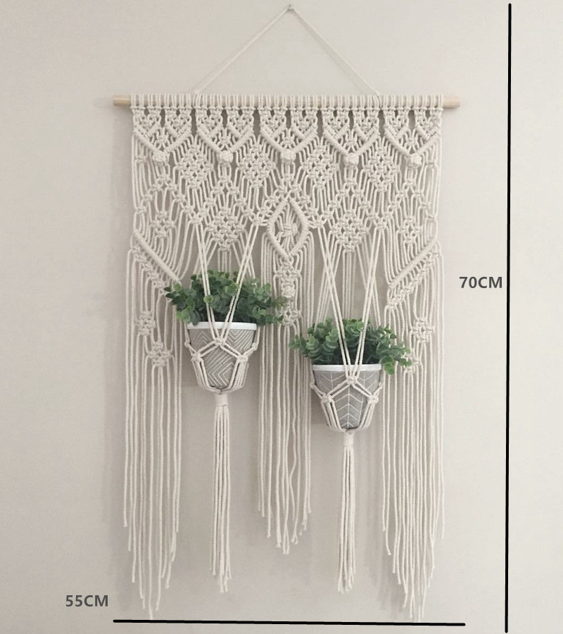 Lace Hanging Planter Basket Wall Handmade Plant Hanging Planter Indoor Filigree Trimming and Wooden Beads Party Wedding Home Decor