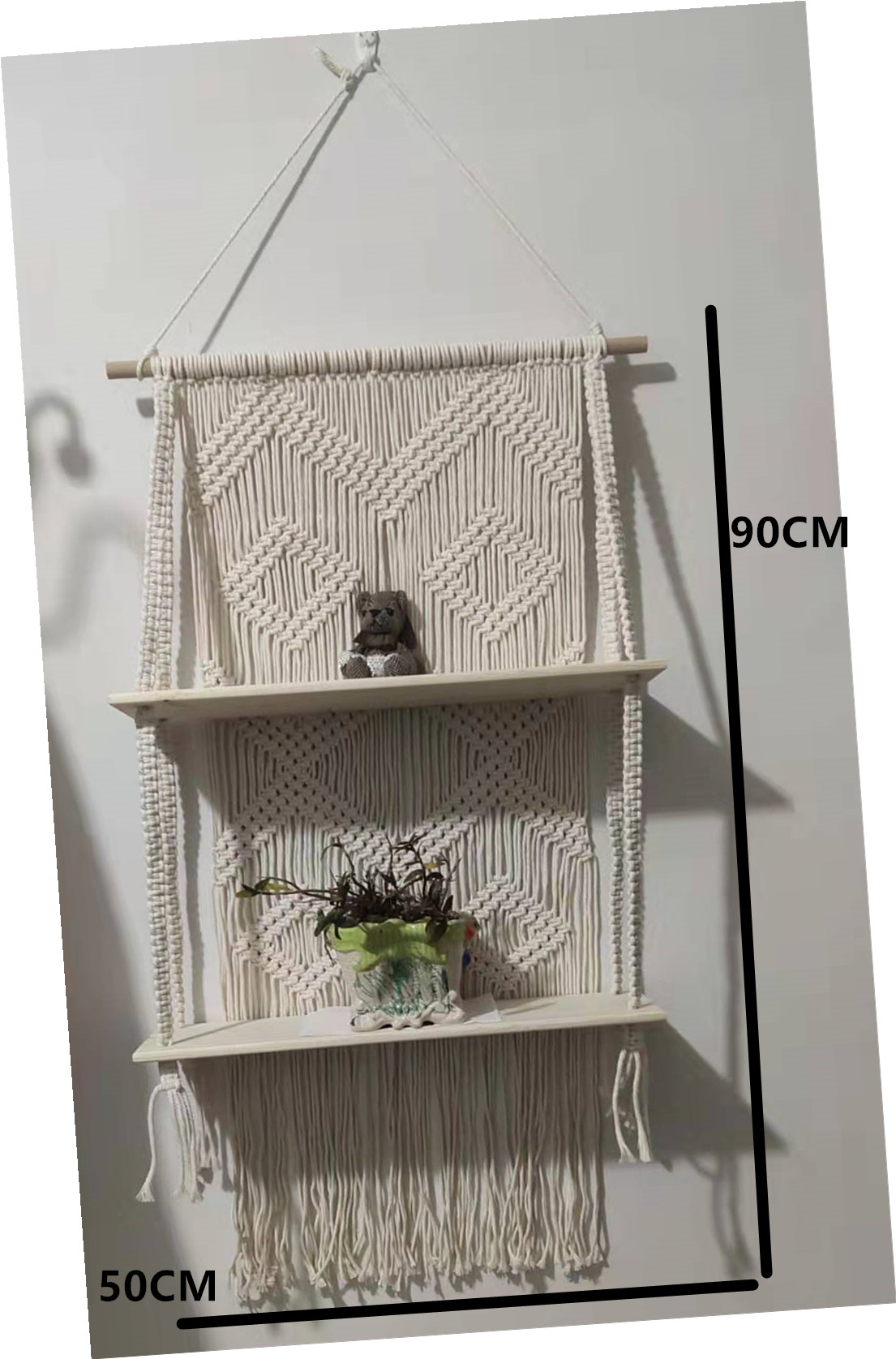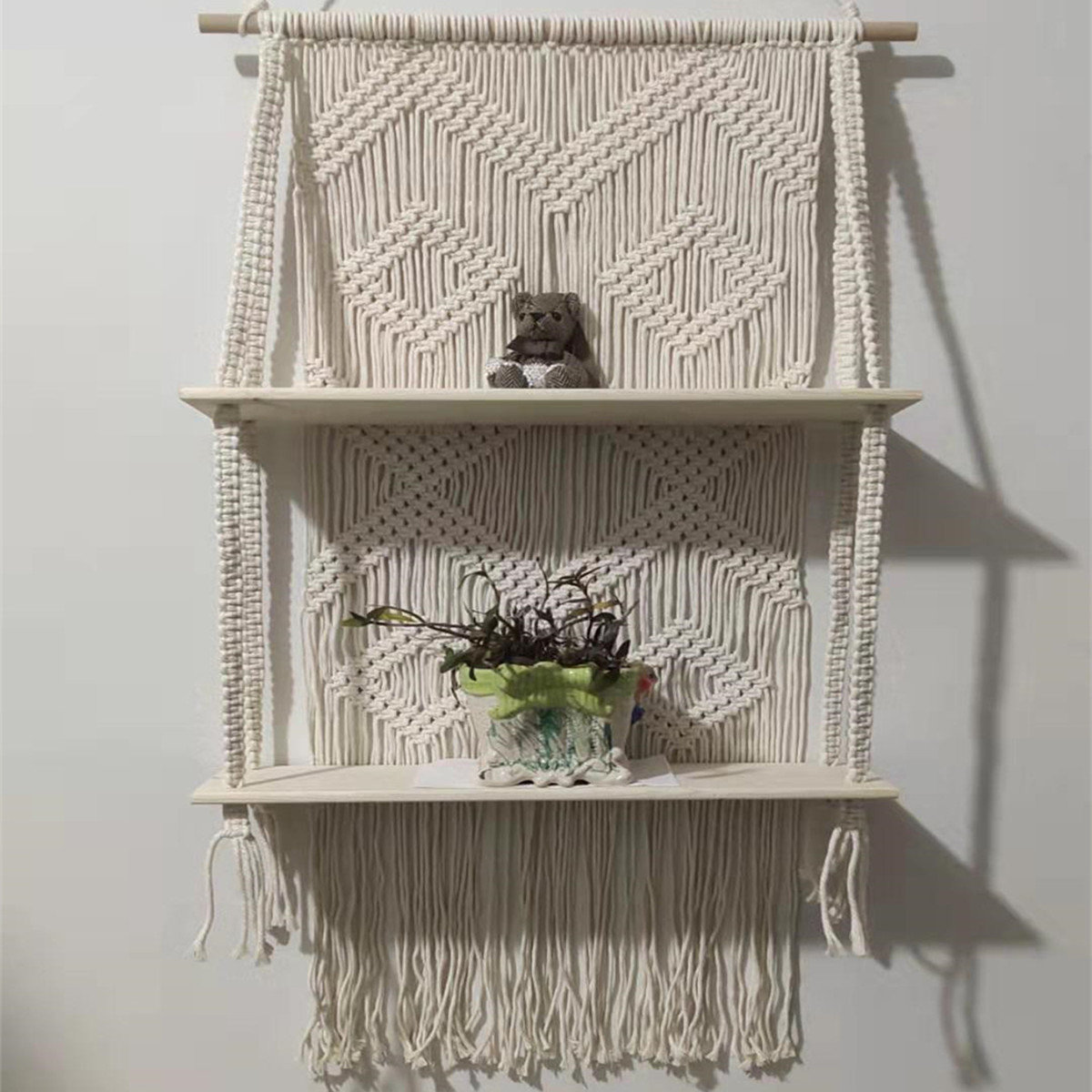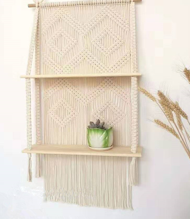 Lace Hanging Planter Basket Wall Handmade Plant Hanging Planter Indoor Filigree Trimming and Wooden Beads Party Wedding Home Decor
