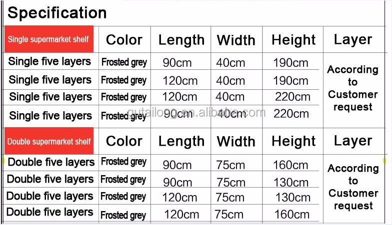 These shelves are suitable for shops, large and medium supermarkets. It takes up little space and the number of layers can be adjusted at will.