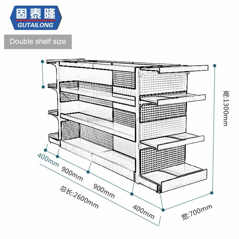 Supermarket shelves.Also known as supermarket shelves, it is divided into two types: one is back mesh supermarket shelves, with single-sided and double-sided options; the other is luxury back-board supermarket shelves, with single-sided and double-sided options.