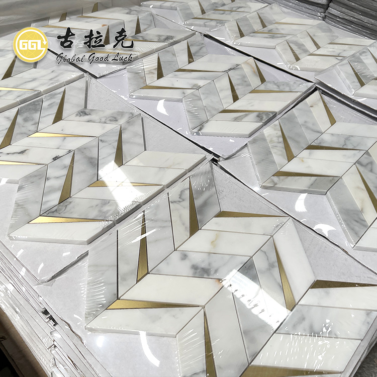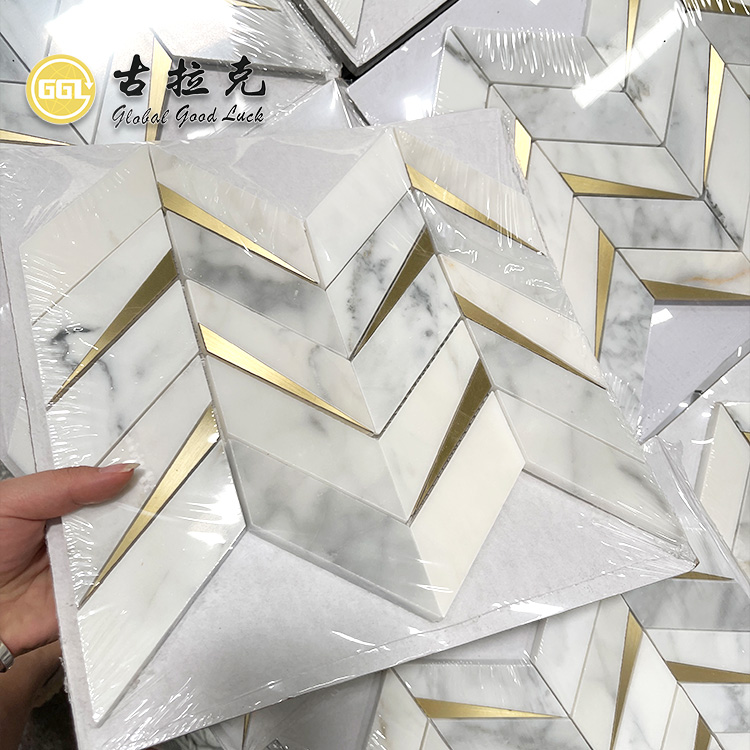 luxury wall tile white marble gold bronze gold mosaic
