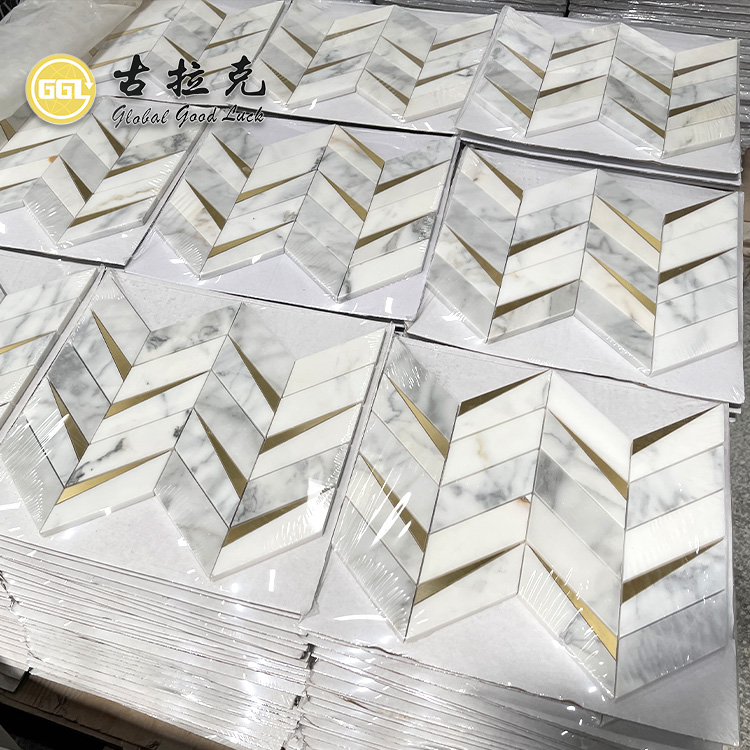 | brand: | GGL | Packaging Details: | Natural Marble Mixed Brass Upholstery Mosaic Tile Floor Design 5 sheets per box, 72 boxes per box or 10 sheets per box, 36 boxes per box |
