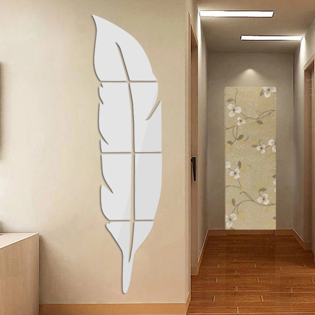 Wall Sticker Mirror Paste 3D Acrylic Waterproof Feather Wall Decal for Home Bedroom Wall Decoration