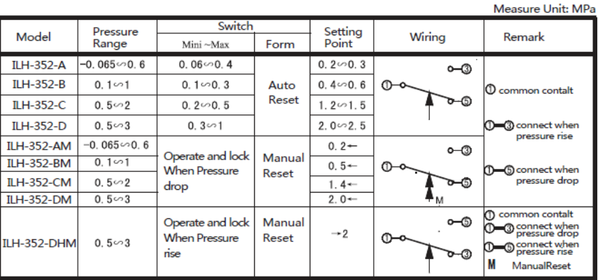 This product is used as pressure control or pressure protection. When the system reaches the set value, the switch automatically turns on/off the power.