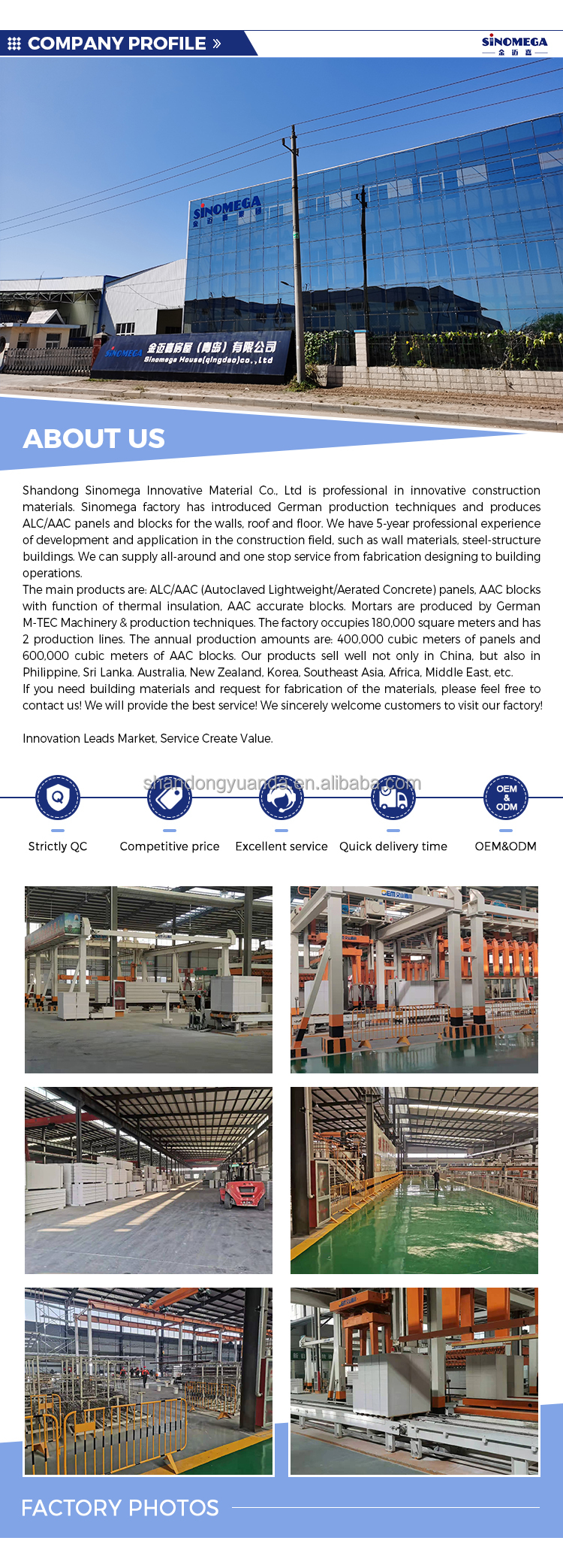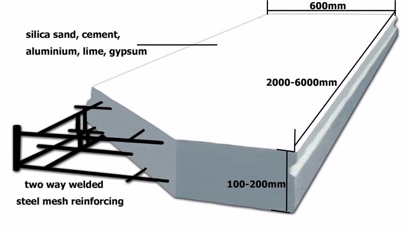 AAC/ALC panelis short forautoclaved lightweight concreteThe panel, mainly made of silica sand/fly ash, cement, lime, embedded double-layer directional steel mesh, is a cellular concrete formwork, it can be used not only as a wall panel, but also as a roof panel, floor or exterior wall modeling. AAC/ALC board is a mature building material with obvious advantages and easy installation.