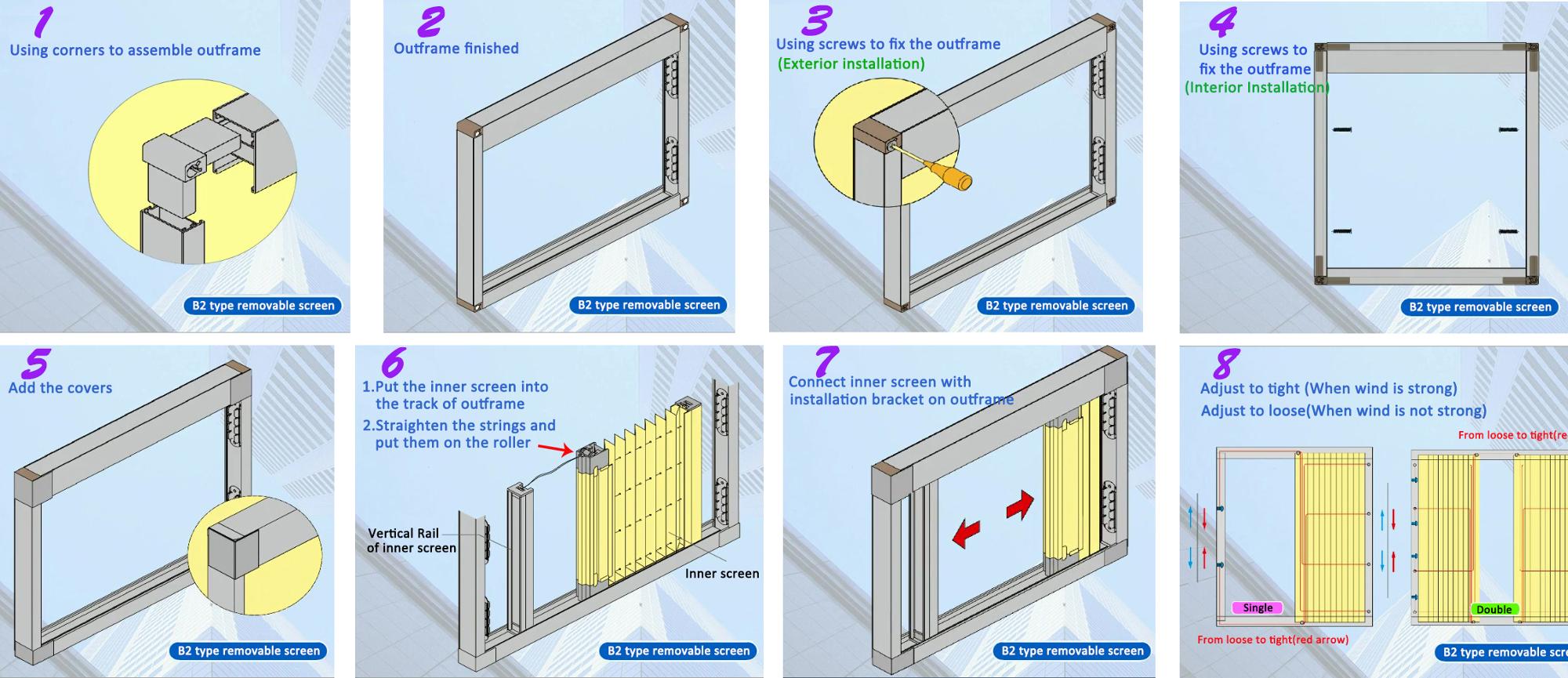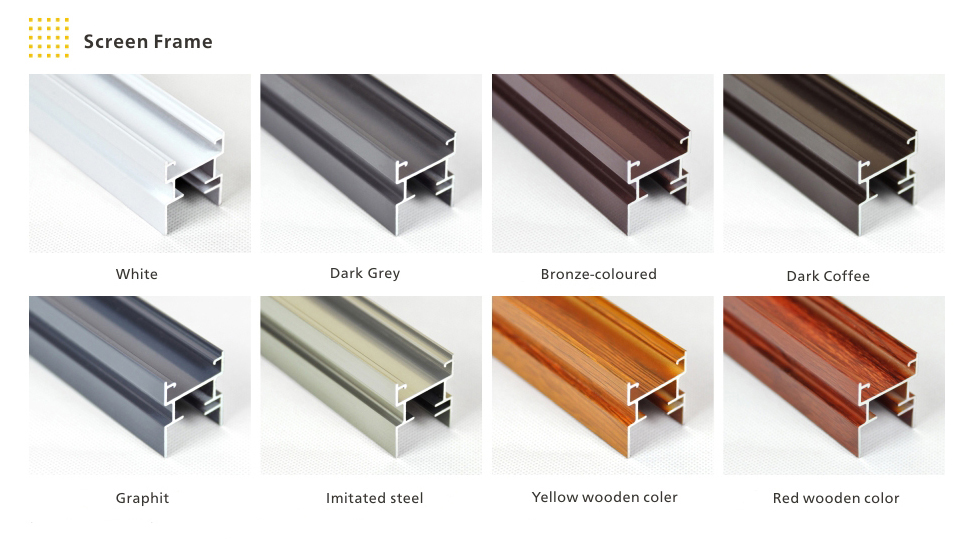 Screen frame - aluminum alloy 6063T5 Mesh material - 100% polyester mesh |