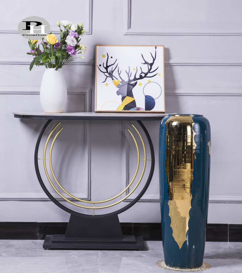 usage: Home Inn Restaurant application: Home Decor Hotel Decor type: table vase brand: Itai Origin: Guangdong, China product name: ceramic vase style: Europe port: Shenzhen age: modern describe: ceramic household vase Packaging Details: New Design Wave Pattern Black Gold Plated Vase Ornament Luxury.... -