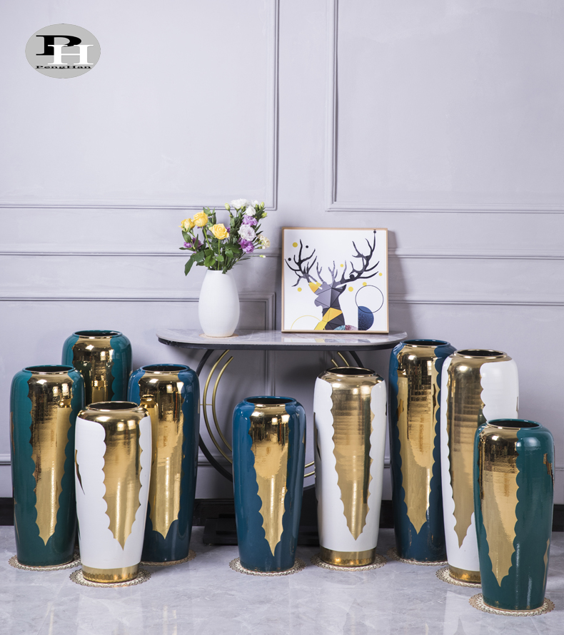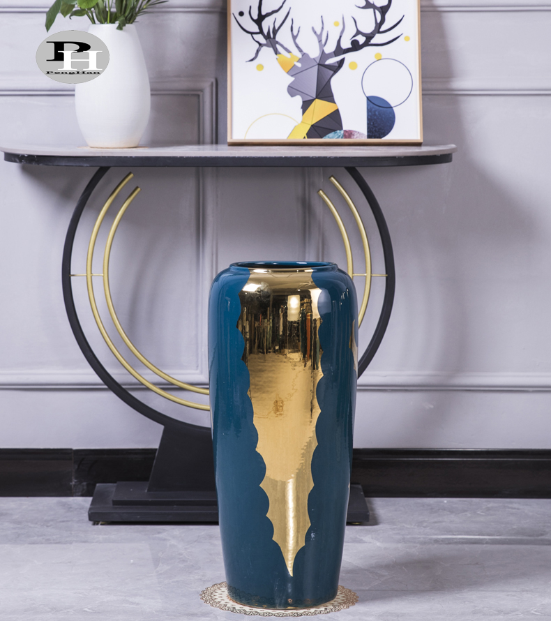 Product Photo Cheap Modern Living Room Wedding Decor Vase Gold Blue Nordic Porcelain Home Decor Ceramic Vase