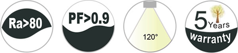 4. Luminous efficiency: 130lm/w Luminaire; 0-10V dimming; PF>0.9;