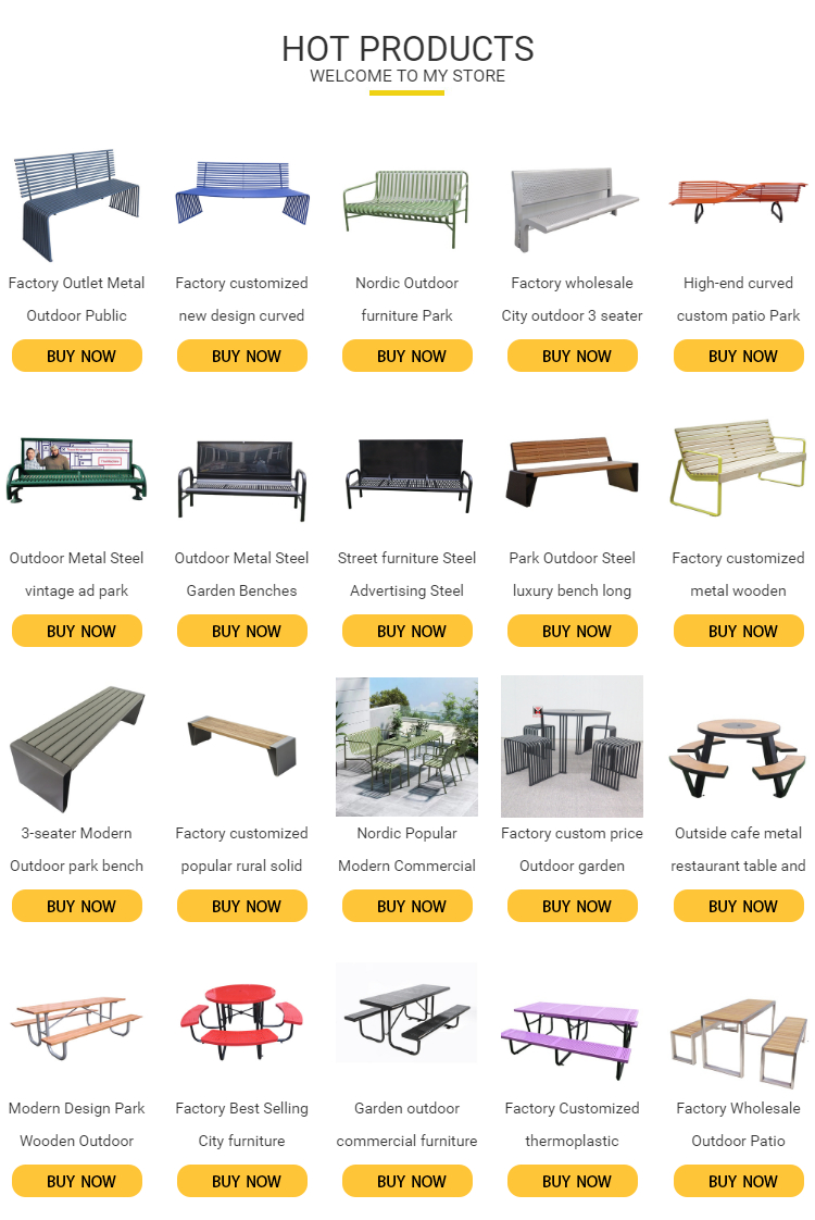 Material: Metal Surface treatment: exterior powder coating Package preview: MOQ: 5 appearance: modern Origin: Chongqing, China Warranty: 1 year application: Home office, catering, outdoor, hotel, school, shopping mall, leisure facility, supermarket, park, garden model: HCS197 payment terms: L/C,...... -