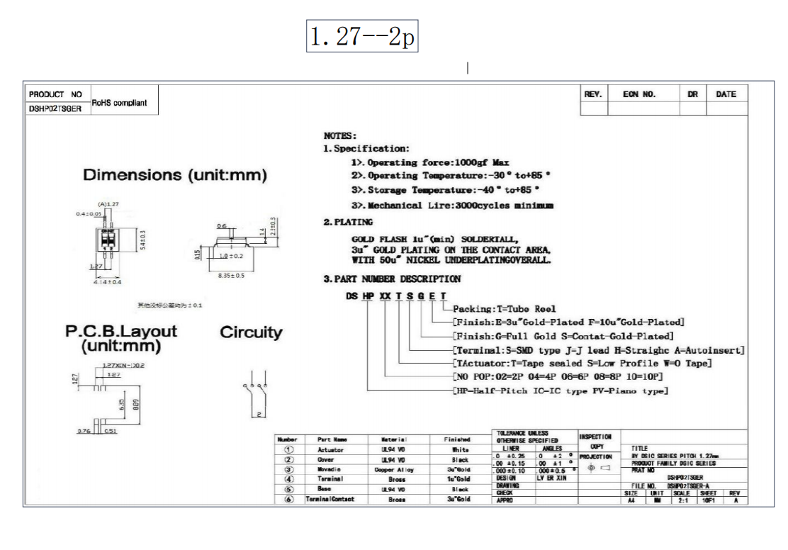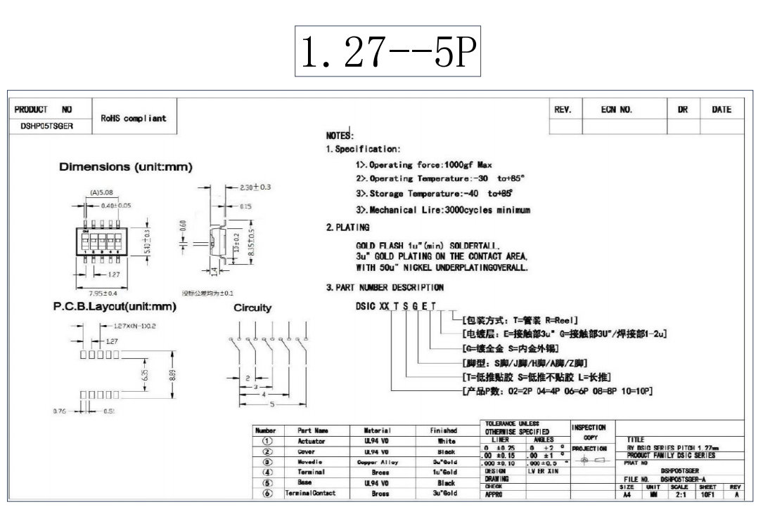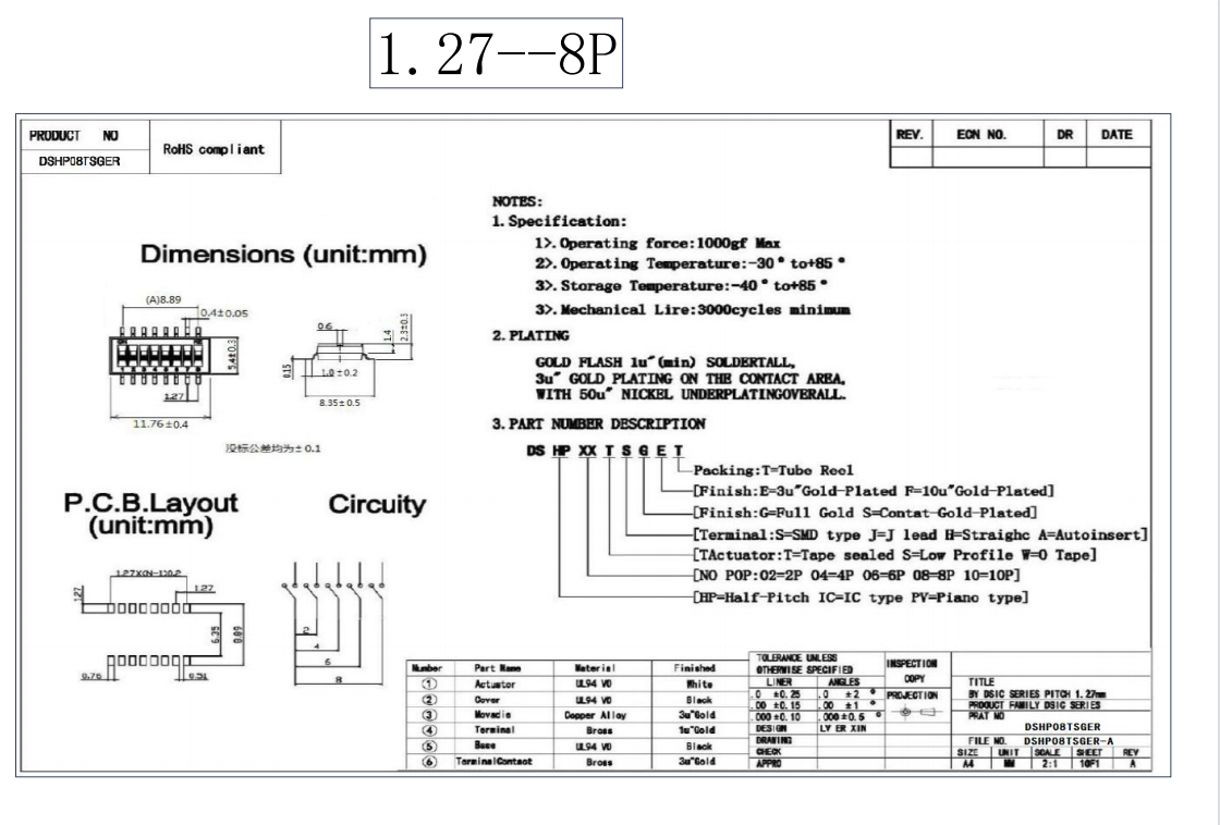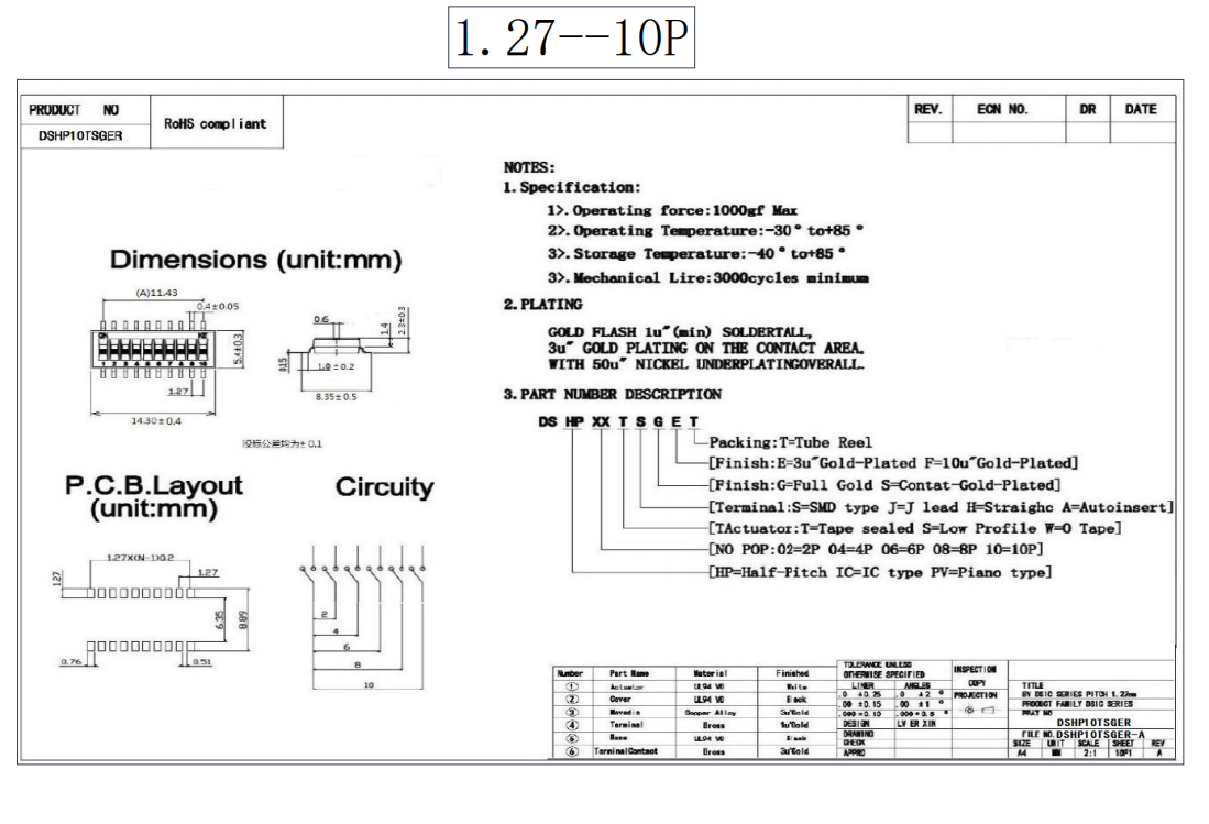 | brand: | Ke | product name: | 2 3 4 5 6 8 10 P 1.27 DSHP DIP switch |
