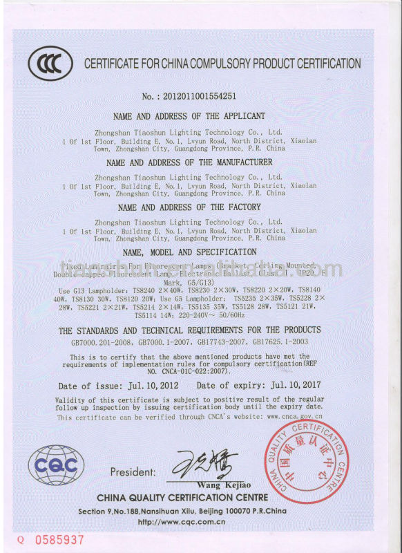 Ballast:SONTEC, VS, OSRAM or TRIDONIC.ATCO
