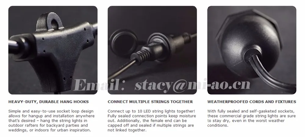 E26 Outdoor Weatherproof Commercial Grade Light String Lights with Suspended Socket