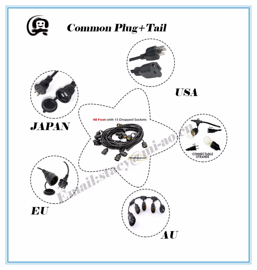 Approval Festoon Globe Lights Australian Style Unique DIY String Light Pole with E27 Lamp Holder