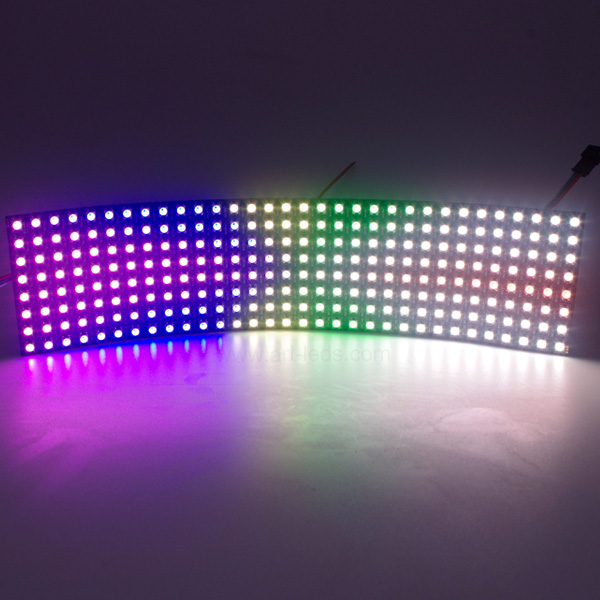 2. This Flexible SK6812 RGBW Pixel LED Matrix 8x32 - 256 RGBW LED Pixels has a thick flexible PCB backing that can be gently bent and flexed around the surface. Also, they are the same integrated LEDs used in our addressable sk6812RGBW LED pixel strips.