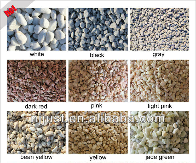type: Gravel, gravel and crushed stone feature: Solid and beautiful, natural color, not easy to fade brand: js Supply capacity: 500,000 tons per month color: White, red, yellow, green, black, gray, brown, etc., can be customized pack: 25kg/bag payment terms: L/C, Western Union, D/P, D/A, T/T,...... -