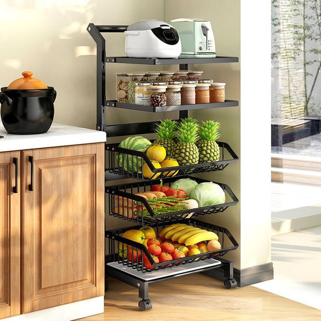 3/4/5 Tier Fruit and Vegetable Storage Cart with Wheels Kitchen Storage Basket Rack Stackable Metal Storage Rack Shelves