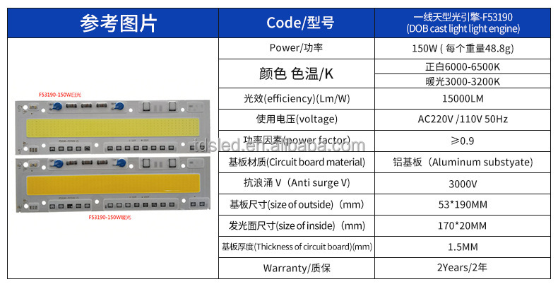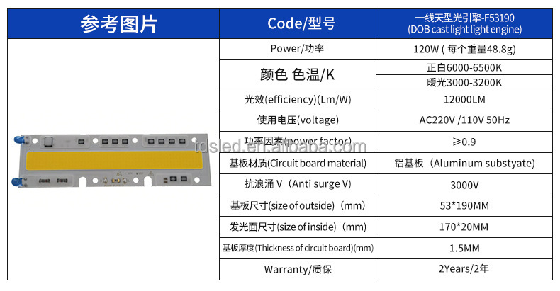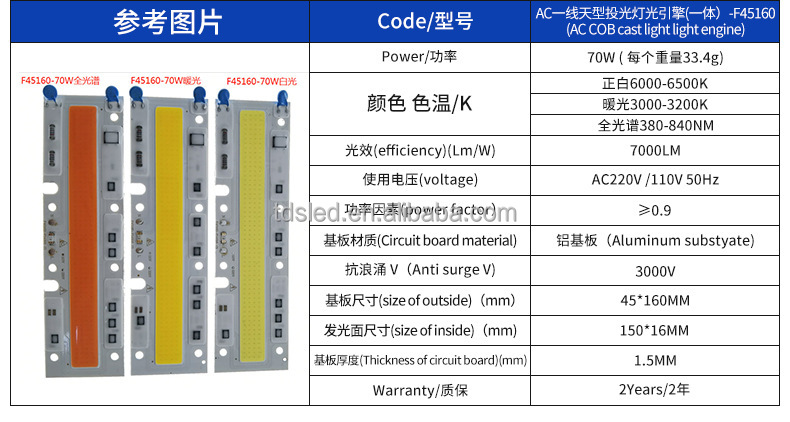 30W 50W 70W 100W 120W 150W COB LED Details: