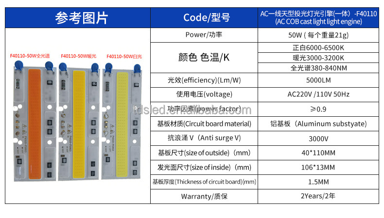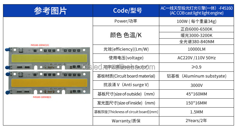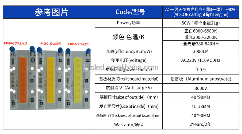 Note: Brand new 380-840nm 3000-6000-8000K AC110V 220V 230V LED COB chips.The LED is a driver-free type, and it can be used directly with AC110V 220V 230V.