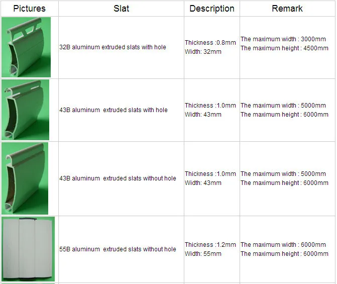 | thickness: | 0.8mm~2.5mm | Slat Options: | 32/43/55/77/98 mm |