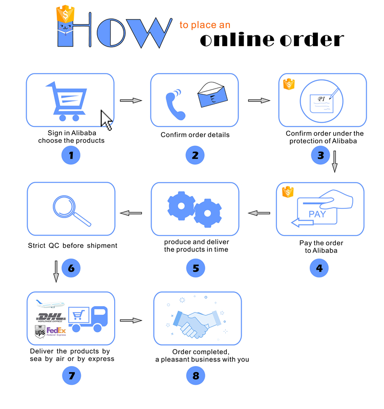 2) Paypal, TT Bank Wire, L/C, Western Union, Trader Assurance, Pay Later, Credit Card.