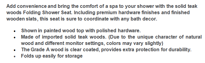 | Seat top: | Made of Burmese Teak | Function: | Collapsible after use |