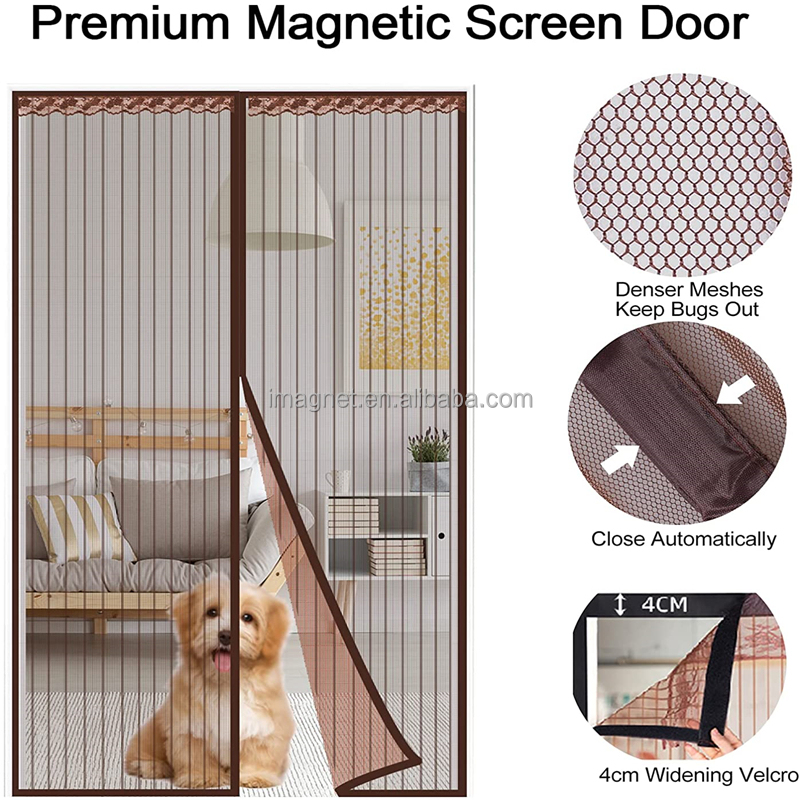 * AUTO-CLOSING DESIGN WITH STRONG MAGNETIC POINT:: Hands-Free - Allows for easy browsing when hands are full. Pet Friendly - Dogs and cats can come and go from the house with ease. Mesh screen helps keep insects, mosquitos and flies out.