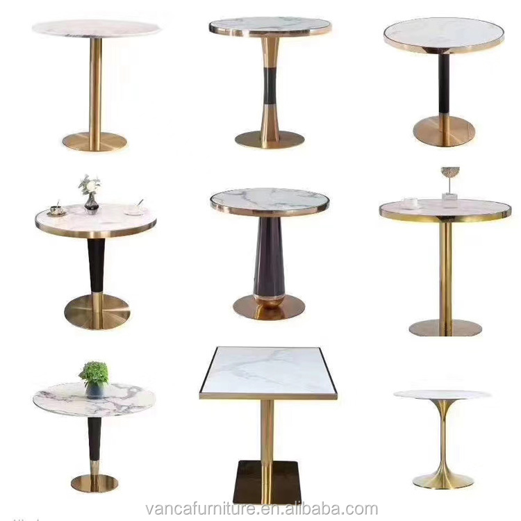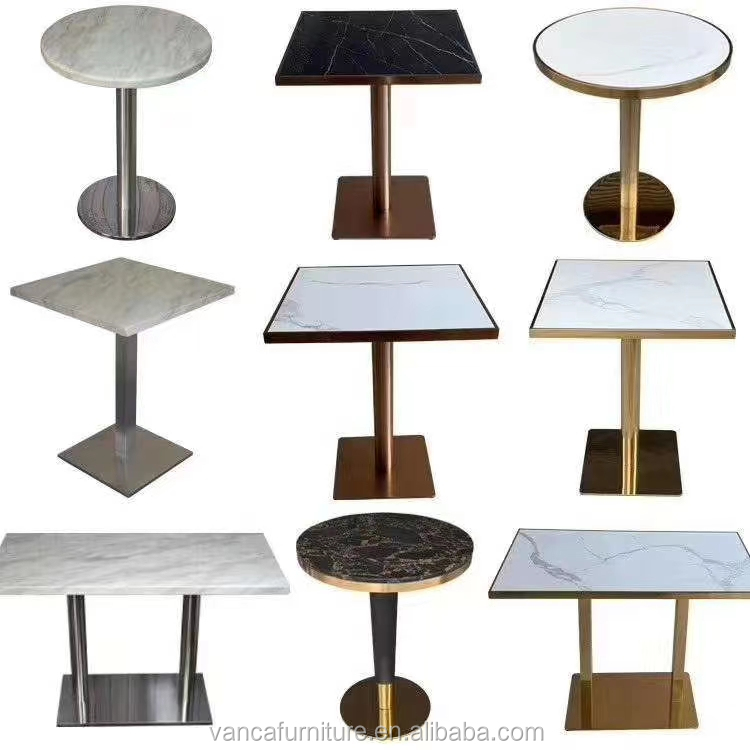 Best Selling Restaurant Marble Dining Table Fast Food Restaurant Table Metal Base Wholesale