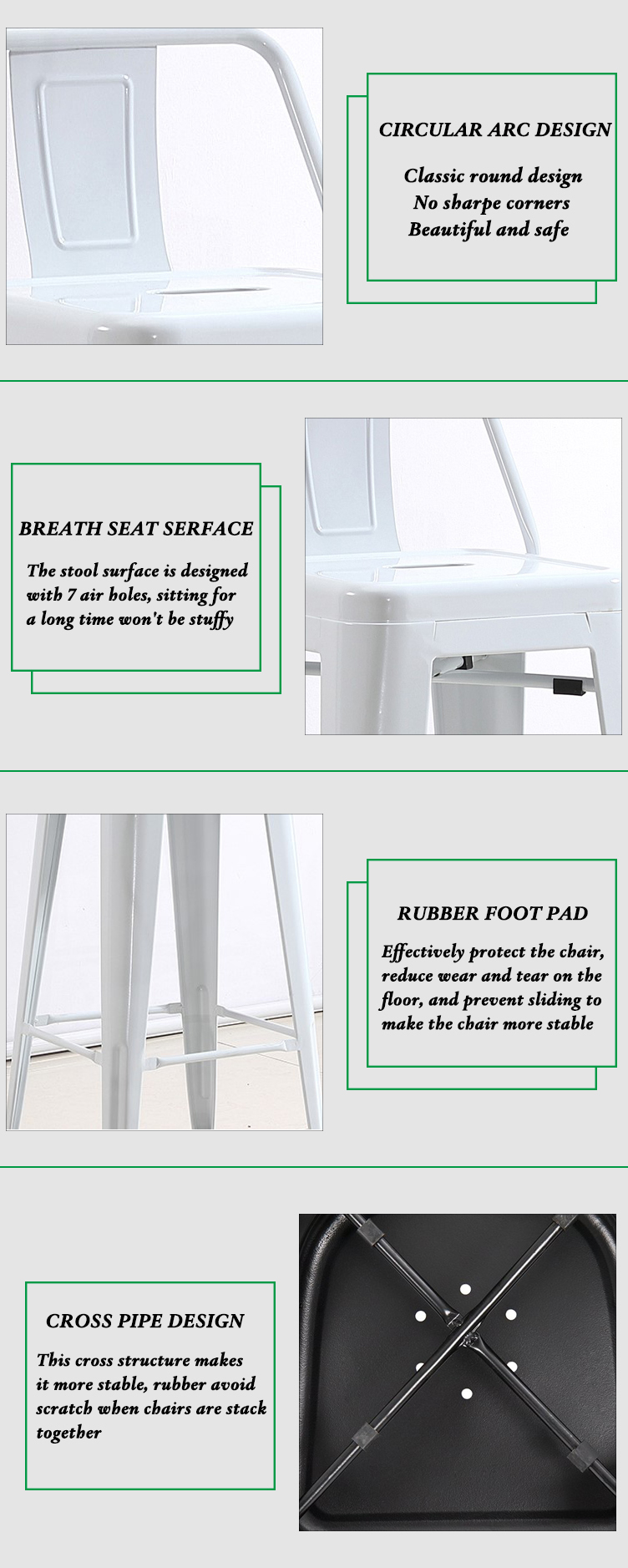 | advantage | 1. Professional Services. (10 years furniture experience) 2. We are a factory with competitive price. 3. Support customer customization. 4. Do a good job in production, quality control, packaging, delivery and other work. Metal Chair Metal Folding Chair Metal Chair Leg Dining Chair Metal Creative Iron Chair Metal Metal Dining Chair |