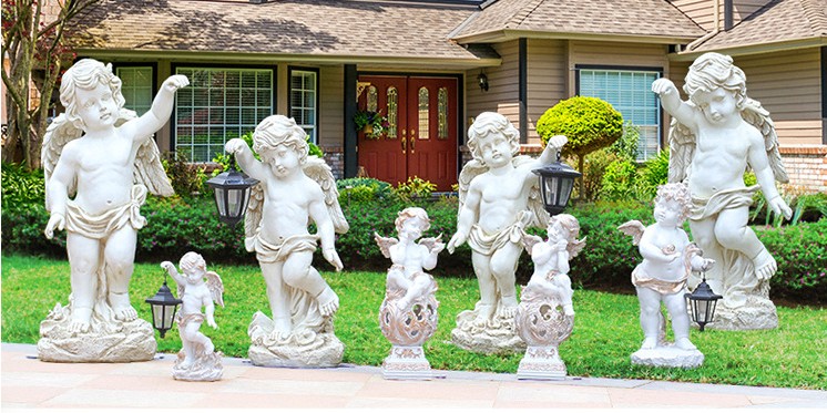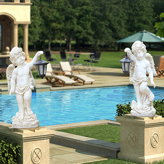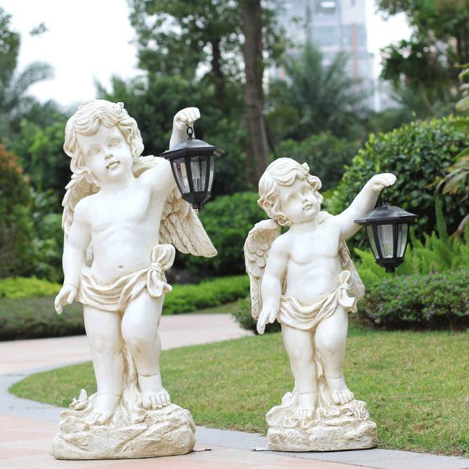 Glassfirbe Garden Statue Shapes Outdoor Garden Cherub with Lantern