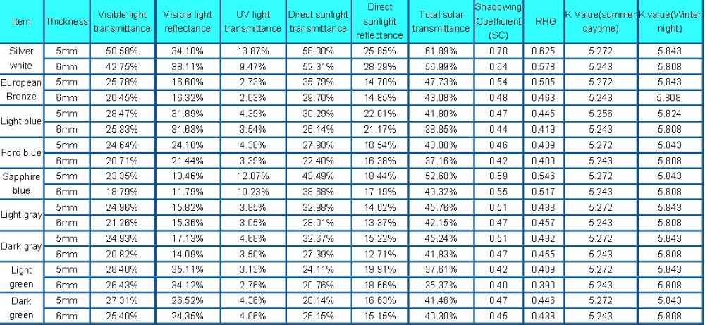 | Supply capacity: | 20000 square meters per day | Glass color: | Silver, Bronze, Gold Bronze, Euro Grey, Dark Grey, F-Green, Ford Blue |