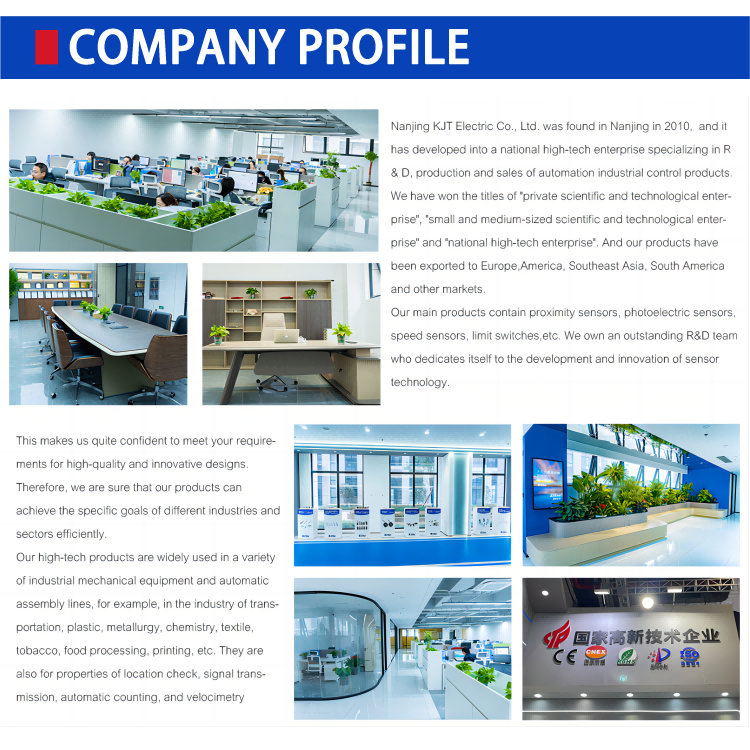 KJT limit switch has reliable action, stable performance, fast frequency response, long service life and strong anti-interference ability. Widely used in machine tools, metallurgy, chemical industry, textile, printing and other industries.Product dimensions, cables, and detection distances can all be customized.Proximity sensor switch produced by Nanjing Kejietong Electric Co., Ltd.It can completely replace imported proximity switch brands such as Turck, Omron, and P+F.
