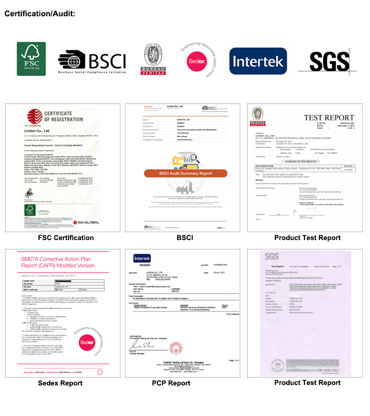 5. MembersBSCI and SEDEXaudit;Forest Stewardship Councilcertification;SGS/TUV/Intertek Group/BVafter testing.