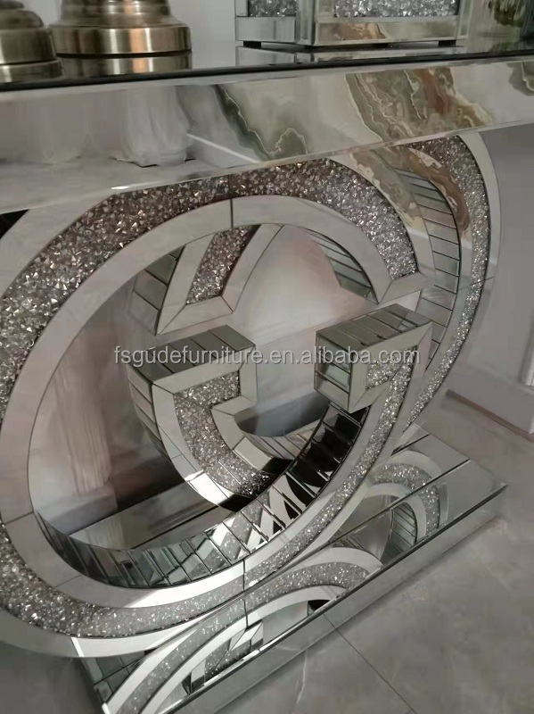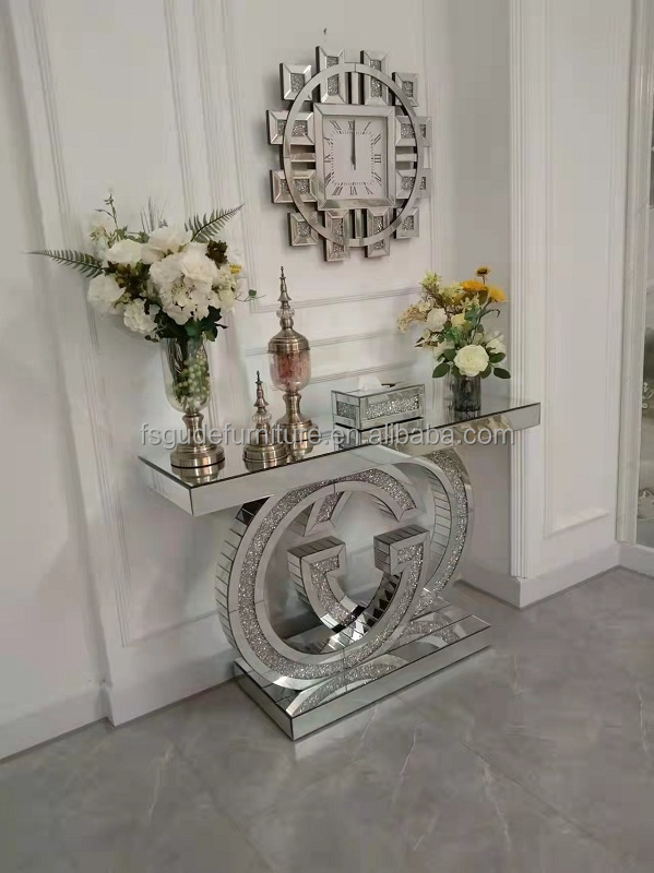 Foshan Factory Wholesale Entrance Table Broken Crystal Diamond Entrance Table Set with Mirror Modern Home Picture 1 Set