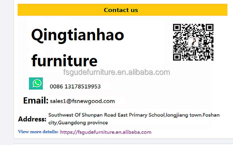 Foshan Shunde Qingtianhao Furniture Co., Ltd. is located in Longjiang Town, Shunde City, Guangdong Province. We started in 2009. We have more than 13 years of experience in the manufacture and customization of living room furniture, wedding furniture and hotel furniture. Covers an area of more than 3000 square meters. Our main products are marble tables and stainless steel wedding chairs, stainless steel tables, sofas, leisure chairs, we believe "good quality, good service" it can bring a win-win situation for our business and friendship.