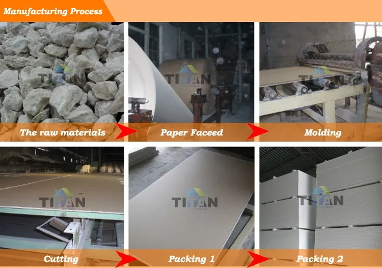 | Supply capacity: | Gypsum board daily output 100,000 square meters | raw material: | Pure gypsum powder; high-quality wood pulp paper; glass fiber; adhesives, etc. |