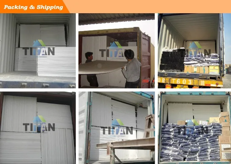 | Packaging Details: | Two sheets are taped face to face and then manually loaded into containers. (bulk or pallet) for plasterboard | length: | 2400/2440/3600/3660mm |